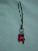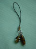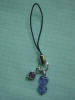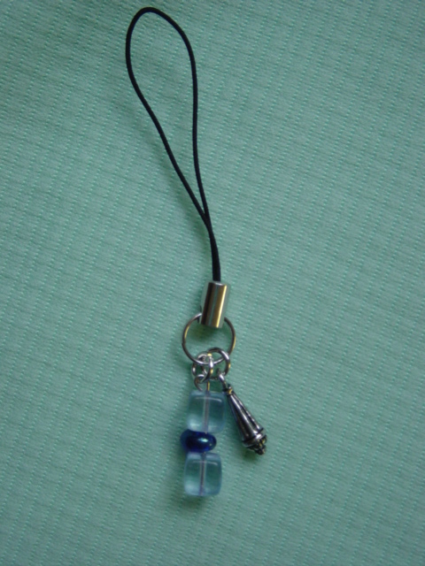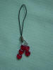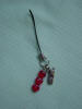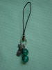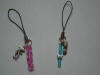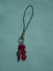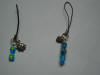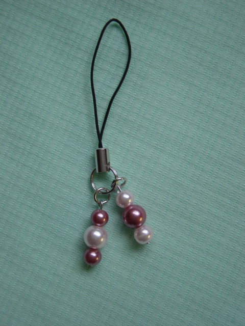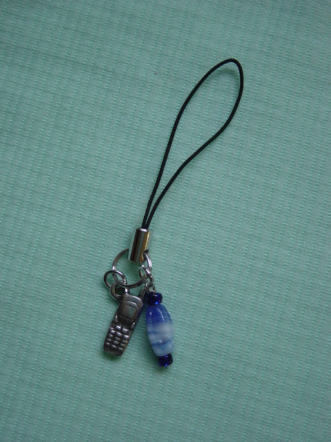 Telefoonblings met verschillende soorten glaskralen en hangertjes.
