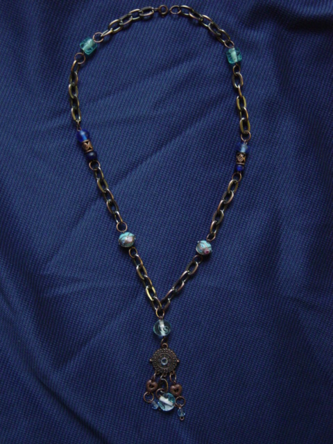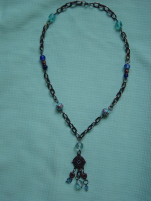 Koperen ketting met glaskralen