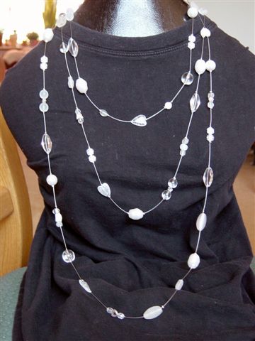 3 rijen aculondraad met witte glaskralen vastgezet met knijpkralen