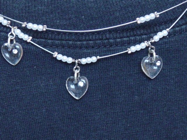 Ketting met glazen hartjes met een steentje erin