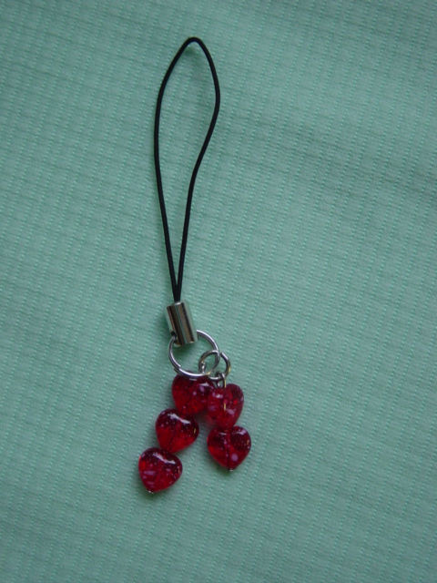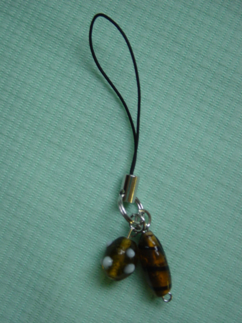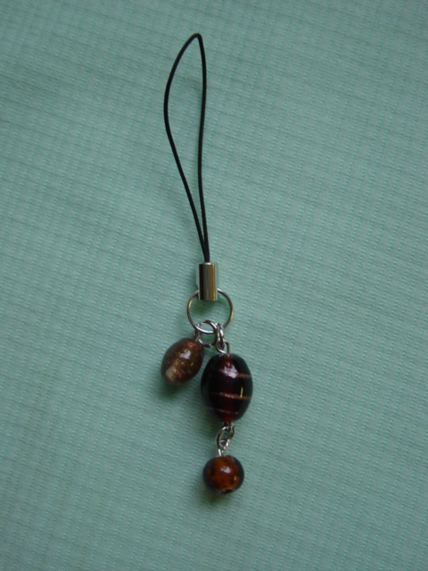 Telefoonblings met verschillende soorten glaskralen en hangertjes.